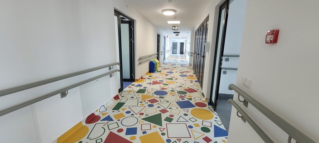 Noua clădire dispune de un cabinet de consultații și 3 săli de tratamente, un spațiu de activități recreative, un cabinet de logopedie, un cabinet de kinetoterapie, o sală de stimulare multisenzorială, un paraclis și 19 saloane cu băi proprii.
