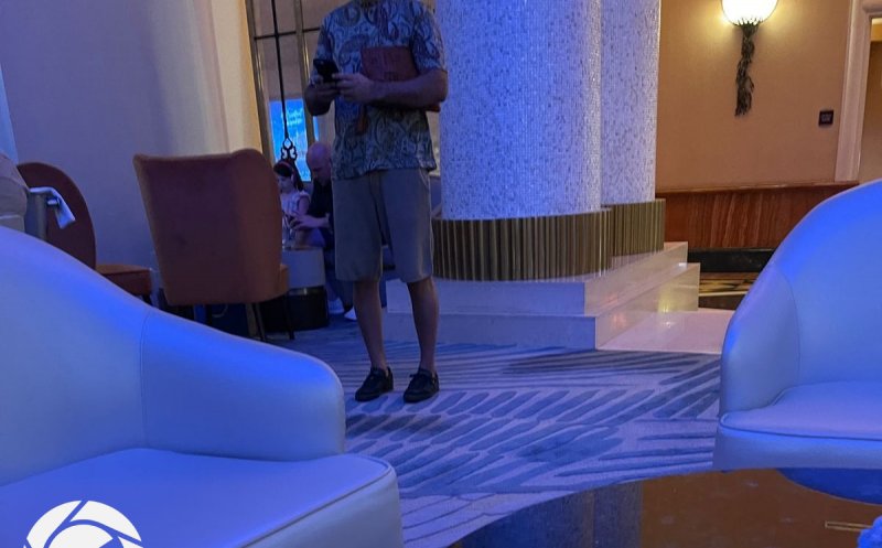Holul principal începe cu un fel de sală de tron în zona recepției și continuă cu magazine, cofetării și cafenele. Într-una au poposit Marian Goleac și Bogdan Niculescu, după ce au aterizat. În ce scop s-a întâlnit cu șeful Rosal? - l-am întrebat pe Goleac în aceeași seară. "În scop întâmplător. Sunt foarte mulți români. Informativ m-am întâlnit cu foarte mulți români aici", a răspuns el. Și Niculescu reacționează prudent când îl chestionăm despre Goleac: "E și el aici, într-adevăr, dar n-a venit cu mine." Iritat, Goleac revine mai târziu cu un mesaj: "Băi, cumetre, lucrurile stau așa: 1. Plec când vreau și cu cine vreau. 2. Mă întâlnesc cu cine vreau, când vreau și unde vreau."