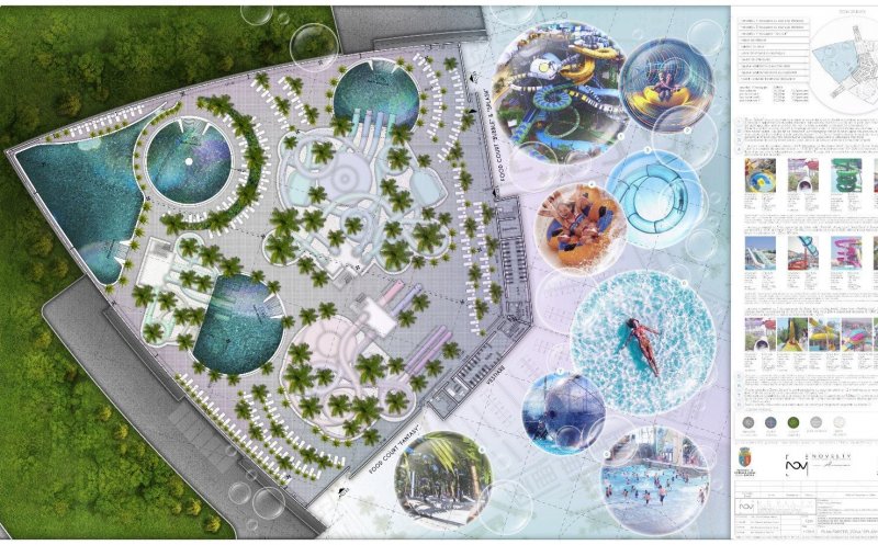 Conform proiectanților de la Novelty AE, aqua park-ul va avea o suprafață construită de 20.900 mp, iar partea exterioară va cuprinde bazine, spații verzi și alei pietonale desfășurate pe o suprafață de 100.000 mp. „Vedeta” aqua park-ului va fi toboganul King Cobra, un echipament cu o înălțime de 17,5 m și o capacitate de 480 utilizatori/ oră. Vizitatorii vor avea la dispoziție o parcare cu 1.200 de locuri.