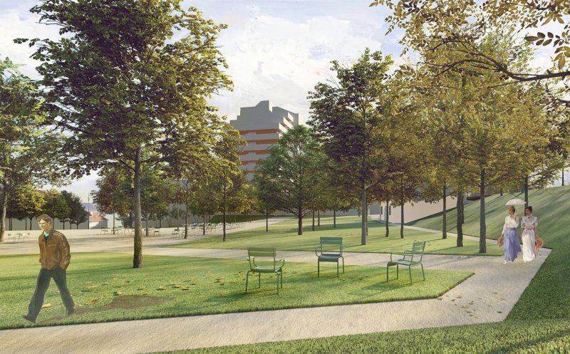 Mobilierul urban va fi integrat unui concept coerent pentru imaginea urbană a spaţiilor publice din întregul ansamblu protejat. Proiectanții au propus, pe lângă un sistem de alei şi platforme pentru circulaţii pietonale şi velo, mobilier urban, amenajări pentru joacă, odihnă, sport si alte activităţi în aer liber, construcţii pentru activităţi culturale şi alimentaţie publică deschise publicului larg și terase sezoniere în spațiul public asociate acestor funcțiuni, grupuri sanitare, spaţii pentru administrare și întreţinere.