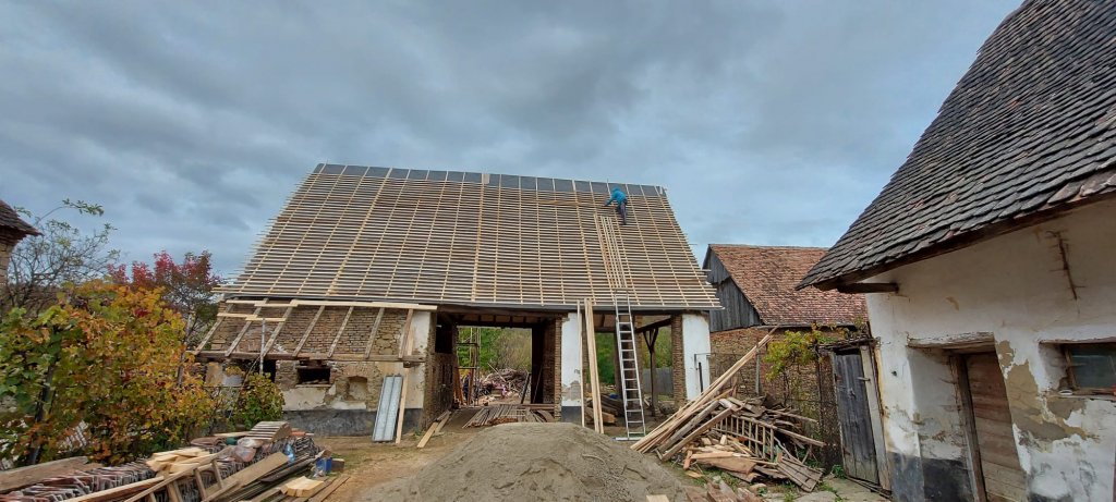 "Intervenția păstrează cât mai mult din substanța originară, structura existentă a acoperișului este vizibilă la interior, zidăria de piatră și cărămidă este curățată și rostuită cu mortar de var în care s-a adăugat argilă. Au fost păstrați și completați cei doi stâlpi intermediari cu elementele lor (capitel, contrafișe)", a precizat Revista Arhitectura cu privire la şura renovată.