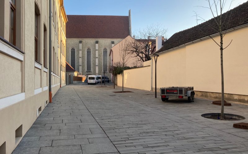 Muncitorii au reușit să pună piatră cubică pe aproape toată strada Kogălniceanu și câteva adiacente. Se lucrează intens pe Universității, însă șantierul este destul de pustiu pe Iuliu Maniu, cuprinsă și ea în proiect.
