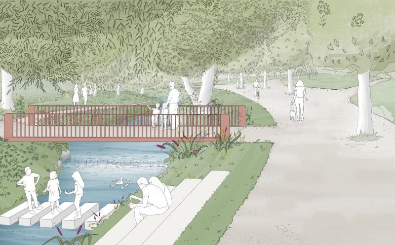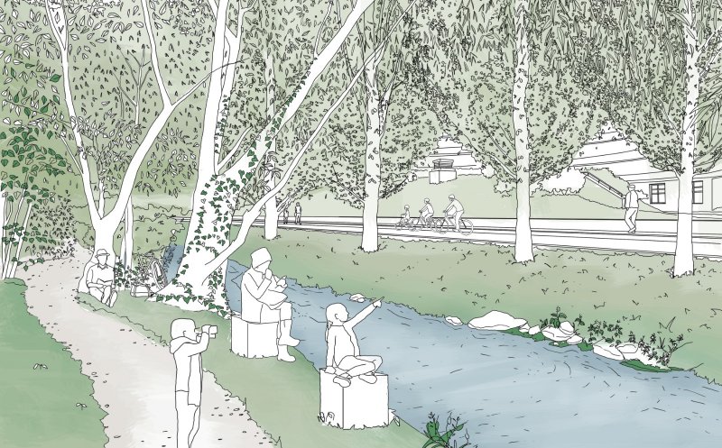 Terenul propus pentru realizarea investiției are o suprafață de 32.669 mp și este situat în intravilanul municipiului Cluj-Napoca, în zona adiacentă Parcului Rozelor. Tronsonul include malurile Canalului Morii, între Someș și str. Plopilor, fiind de asemenea incluse culoarul Pârâului Calvaria, între str. Plopilor și Canalul Morii și zonele de legătură cu principalele funcțiuni adiacente - Parcul Rozelor, zona de locuit către str. Arinilor.