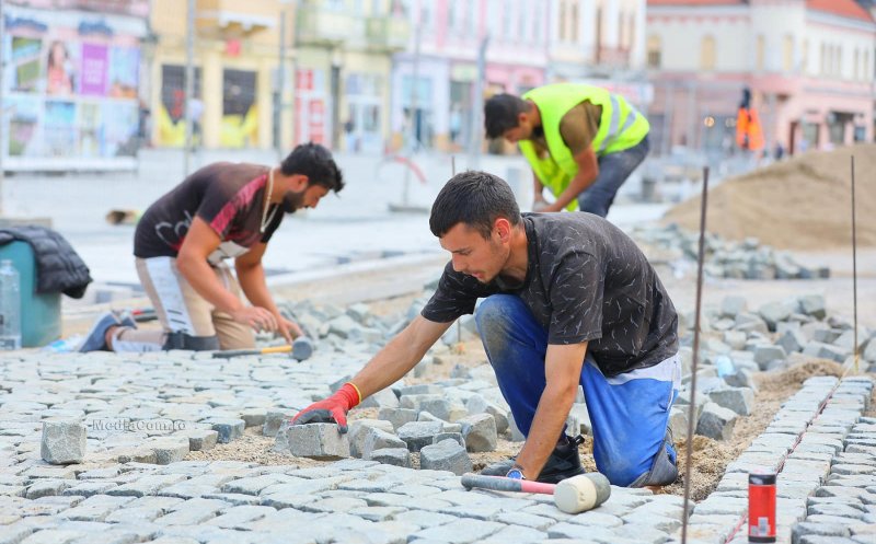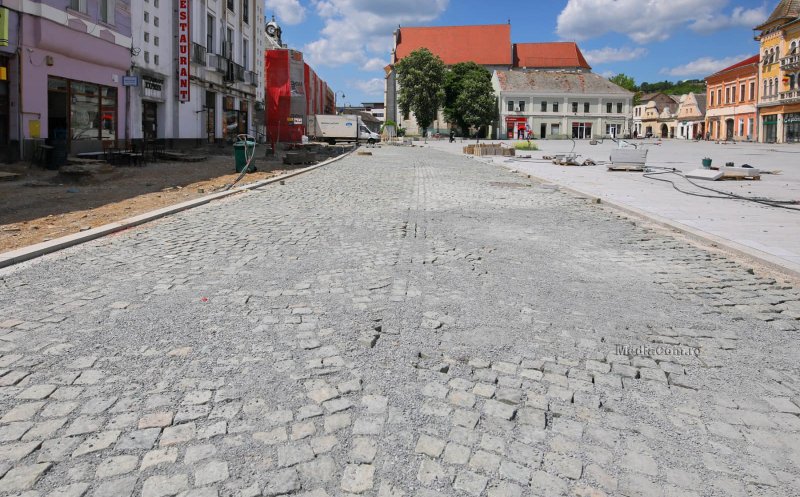 Potrivit edilului Cristian Matei, lucrările se concentrează momentan atât pe partea carosabilă, care este pavată cu piatră cubică, cât și pe zona pietonală, unde sunt montate dale de granit.