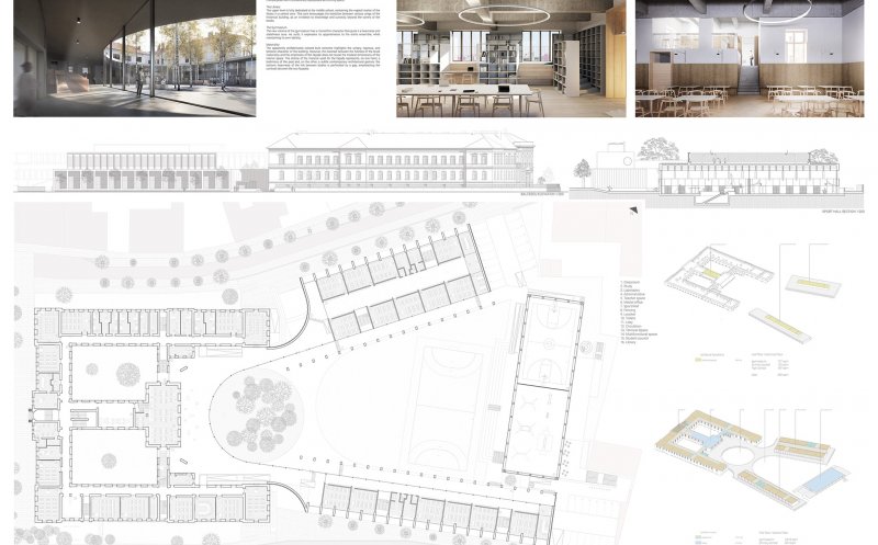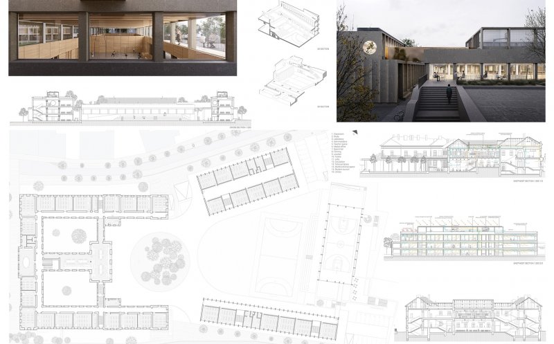 - Regândirea ansamblului alcătuit din corpurile de liceu actuale, clădirea de locuit și sala de gimnastică în vederea maximizării suprafețelor folosite pentru liceu și adaptării spațiului liceului la principiile educaționale ale secolului nostru