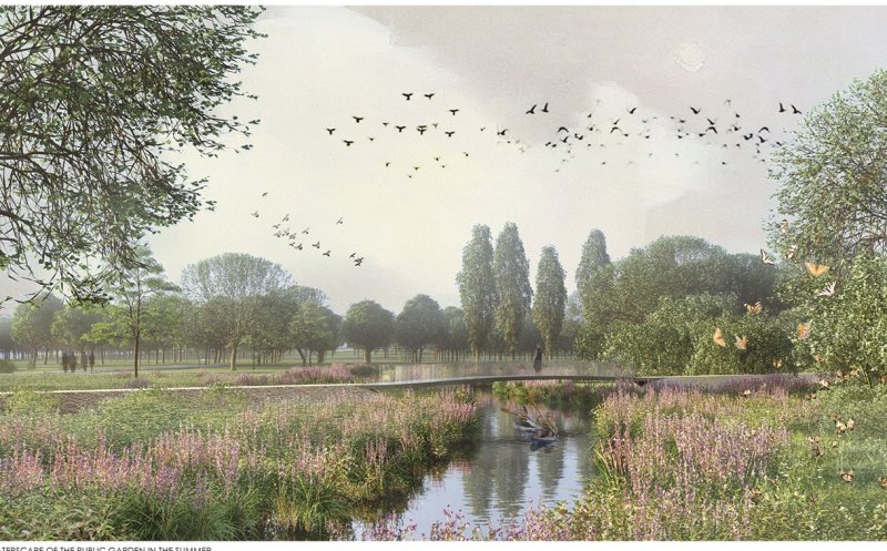 Proiectul transformă topografia actuală, prin considerarea simultană a condițiilor hidrologice și de ambient. Propunerea de vegetație este precisă și este întotdeauna legată de condițiile solului și de fauna pe care ar putea să o atragă. Toată vegetația valoroasă existentă este integrată în noua schemă.