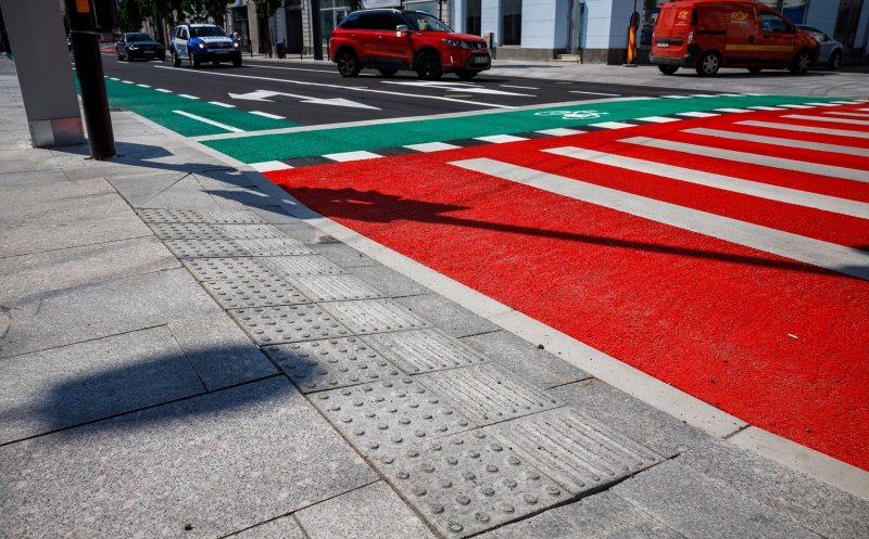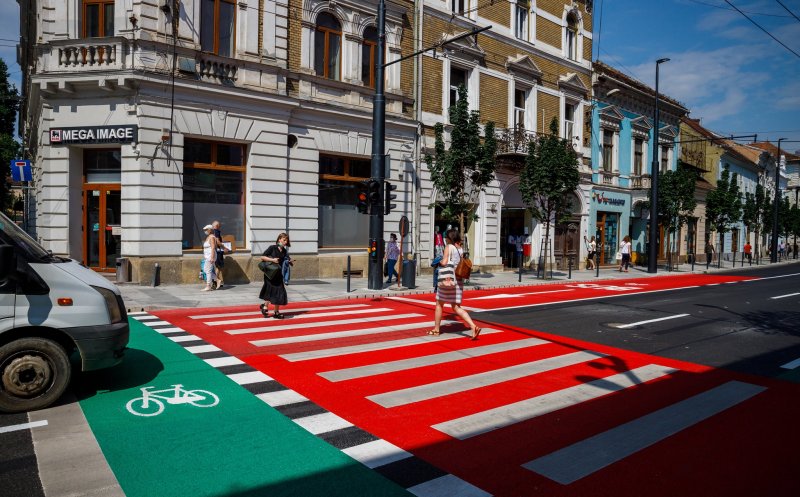 Foto Ferdinand, cu marcajele complete, benzi roşii de bus şi piste de biciclete verzi