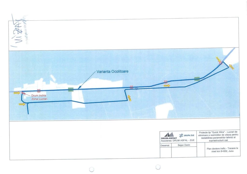 Primăria Jucu anunță că trecerea la nivel cu calea ferată de la intersecția DN1C cu DJ109D Juc-Herghelie spre Jucu de Sus, va fi închisă în perioada 3 martie – 7 aprilie 2026, din cauza lucrărilor de reabilitare efectuate de CFR.