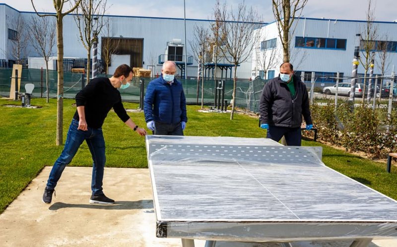 - alte amenajări: Fântână arteziană pavimentală cu jeturi de apă și iluminare LED, pavilion în zona terenului de sport, toalete automate etc.