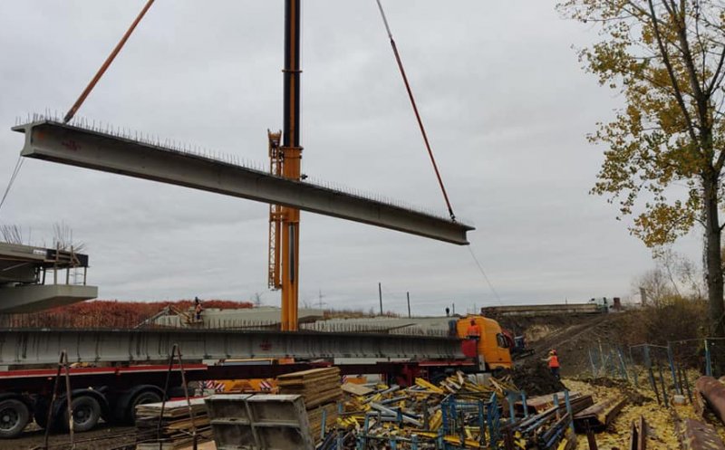 Foto Lucrările la podul peste Arieș din Turda, în grafic. Se montează grinzile pe ultimul tronson