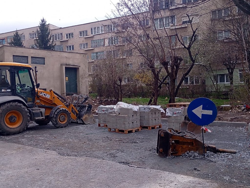 Foto Mănăşturul, împânzit de muncitori care trag tare la borduri şi parcări