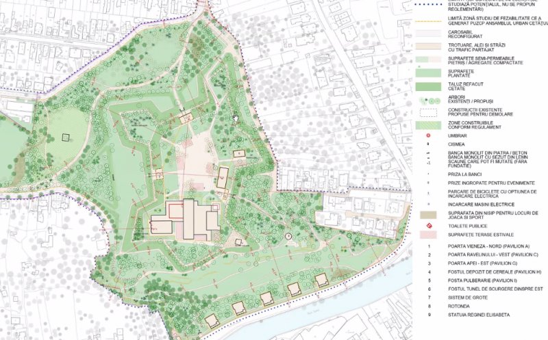 Conform SF, suprafaţa vizată este de aproape 141.000 mp, iar investiţia este compusă din următoarele obiective: amenajare parc pe versantul sudic, amenajare platou nord, amenajare parc aferentă fortificaţiei. Vor fi plantaţi 1.100 de arbori și se vor amenaja 26.500 de metri pătrați de spații pietonale. Sunt prevăzute 110 locuri de parcare pentru biciclete și trotinete, unde se vor instala 7 stații de încărcare mașini electrice și 11 pentru biciclete și trotinete electrice.