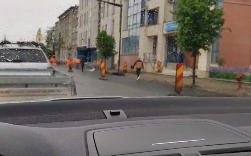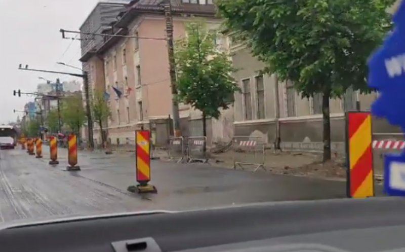 Video Foto Pe ploaie se lucrează "Diferit" la Cluj-Napoca: Un km de stradă blocată pe 21 Decembrie şi o mână de muncitori cu un singur utilaj
