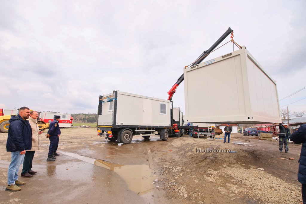 Foto Primele module de locuit destinate familiilor care au pierdut totul în incendiul de pe strada Margaretelor, instalate pe poziții