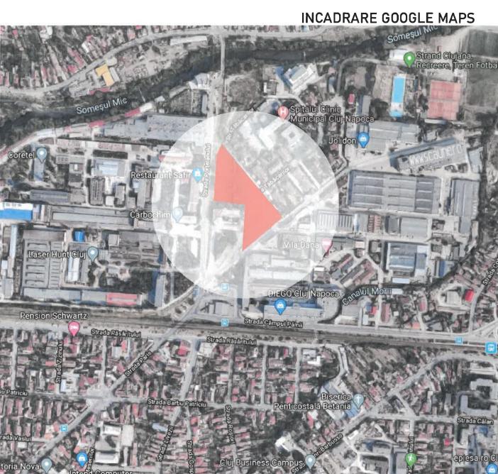 Suprafața totală a terenului studiat este de 11.137 mp. Parcela studiată se află în spatele fostei clădiri administrative de la Clujana, pe fosta platfomră Jolidon, în apropiere de Carbochim și de ansamblul rezidențial Riverside.