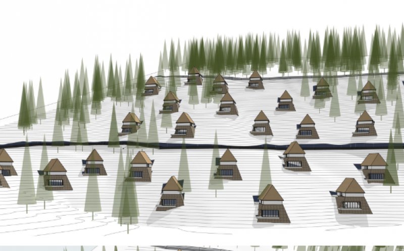 Conform spuselor arhitectului Alida Vișan, este vorba de edificarea a nu mai puțin de 31 de cabane/case de vacanță. Actualmente terenul studiat este liber de construcții și are acces din drumul 107B, situat în partea estică a parcelei. Regimul de înălțime propus este P+1E+M.
