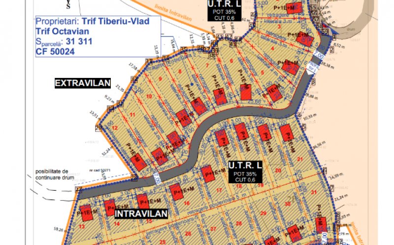 Proiectul s-a aflat în faza obținerii studiului de oportunitate necesar demarării investiției. Beneficiarii sunt Trif Tiberiu Vlad și Trif Octavian. Tema de proiectare propune introducerea în intravilan a terenului studiat și parcelarea lui în vederea construirii de locuințe unifamiliale și funcțiuni complementare.