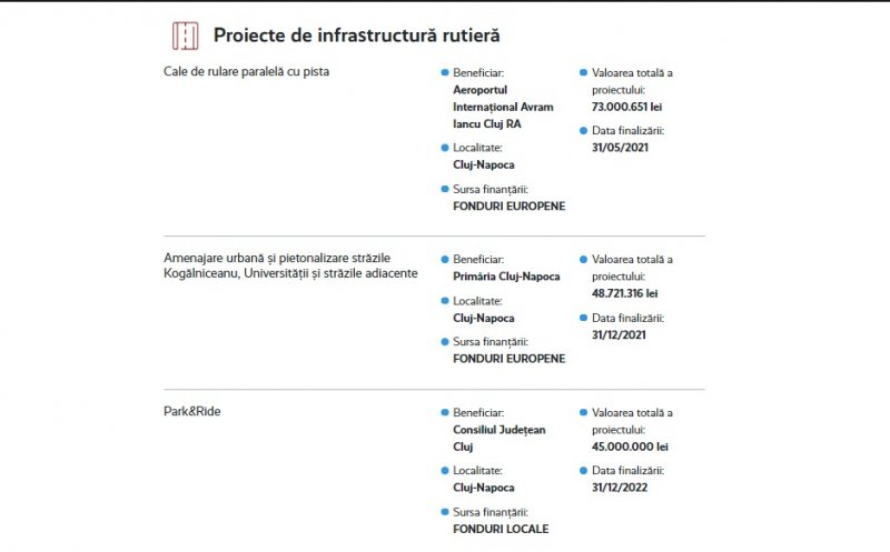 Jurnaliştii de la Recorder pun la dispoziţia cetăţenilor o HARTĂ INTERACTIVĂ cu lista tuturor aceste proicte, grupate de pe domenii şi descrescător după suma investită.