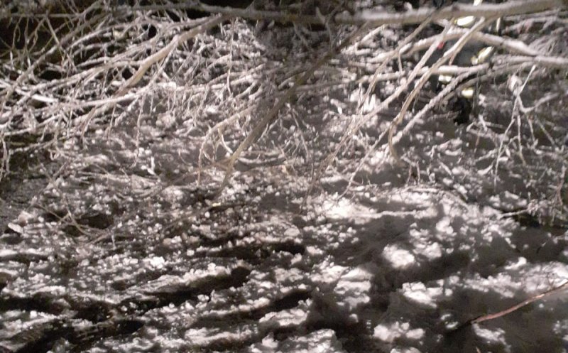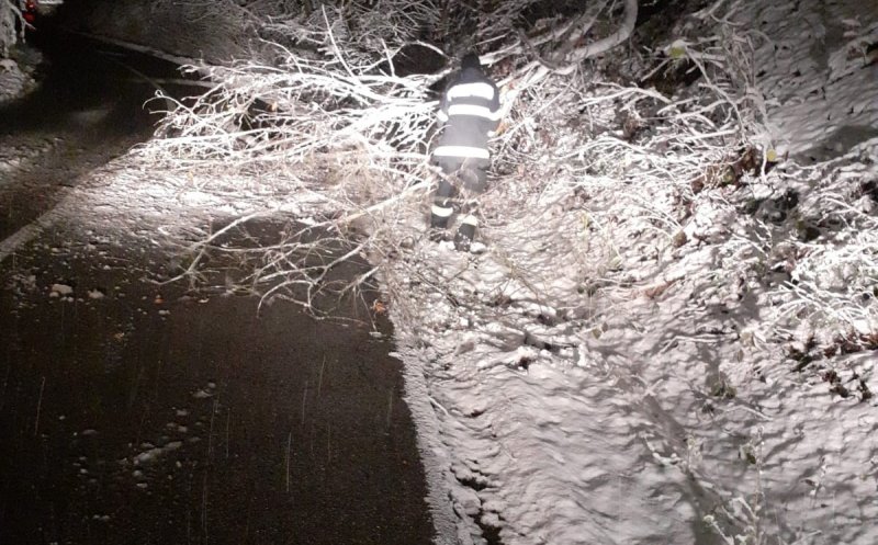 . La fața locului a acționat o autospecială pentru înlăturarea arborilor și ramurilor doborâte de acumulările mari de zăpadă, în urma precipitațiilor căzute recent.