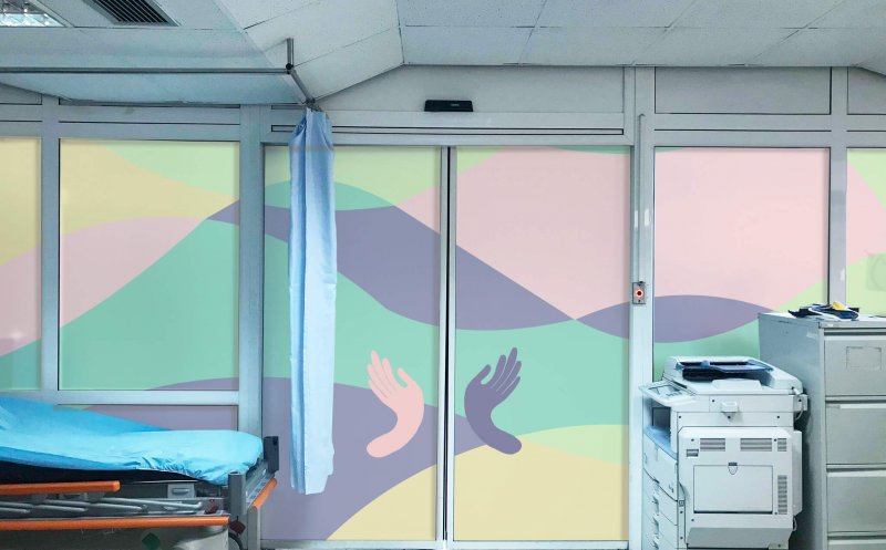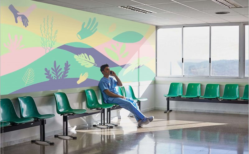 Pereții interiori ai spațiului de așteptare și tranzit vor fi pictați și decorați cu elemente grafice reprezentând mâini și plante. Intervenția constă într-o lucrare murală, participativă, care va acoperi 100 mp și o serie de planșe de colorat care vor fi puse la îndemâna pacienților pentru a putea fi colorate în sala de așteptare.