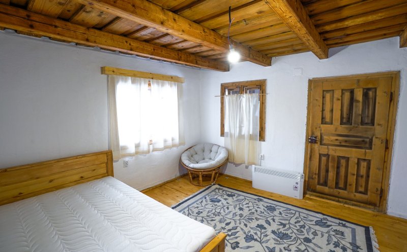 Acoperișul este din șindrilă, realizat și bătut de un meșter priceput din Vrancea. Casa și anexa au o suprafață totală de 60 mp. Casa regăsește 2 camere, iar în anexă se află zona de living bucataria si baia.