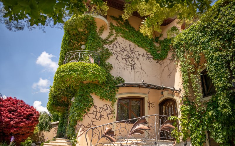 Foto Cu câte se vinde "Casa fără colțuri" din Cluj: tâmplărie lemn Larice siberian, vitralii în tehnica Tiffany, mozaic Bisazza şi picturi Art nouveau
