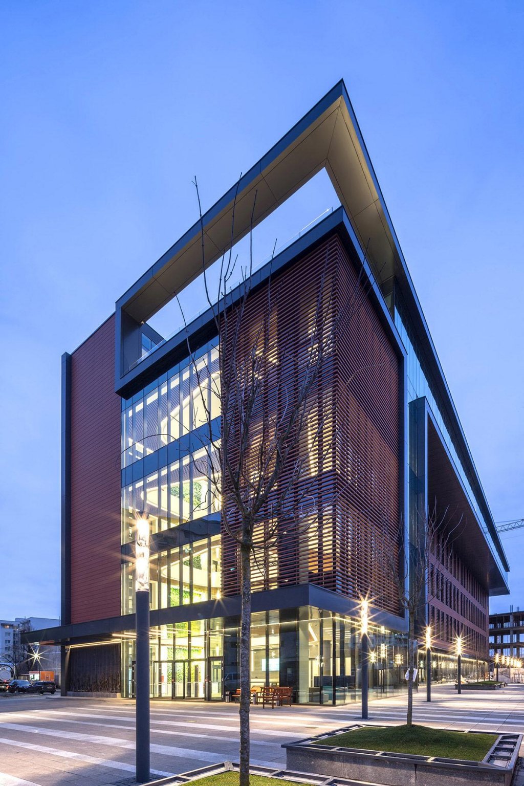 „Clădirea dispune de sute de senzori și elemente periferice de comandă și control, o rețea distribuită de servere de automatizare și controlere care controlează infrastructura electrică, soluție de iluminat complet adresabilă, cu 1.500 de corpuri iluminat led, iluminat exterior și arhitectural, jaluzele exterioare. Sistemul permite integrarea și monitorizarea a peste 200 de contoare electrice, termice și de apă, în vederea înregistrării și monitorizării parametrilor de contorizare.