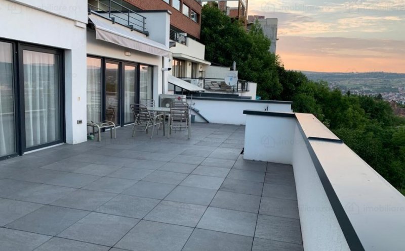 "Vand apartament de lux, in zona centrala - Cetatuie, situat in imobil nou, cu panorama superba asupra orasului, in suprafata de 200 mp, incluzand terasele, finisaje moderne, gradina mica si garaj."