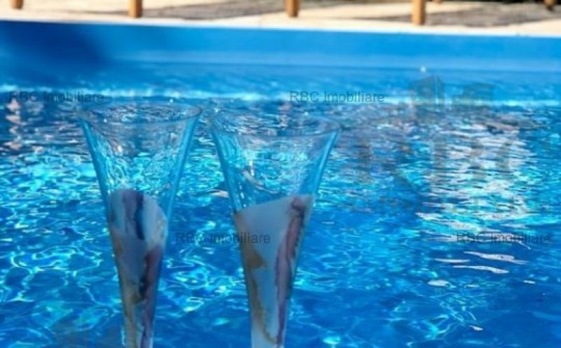 ''Proprietatea, care se intinde pe o suprafata de 4000 mp teren este imprejmuita cu gard de sarma galvanizata pe o fundatie de beton armat, care sunt camuflate de plante cataratoare si vita de vie. In partea dreapta, se inalta primul corp de cladire de 135 mp desfasurati, compus la parter dintr-o suprafata deschisa generoasa, aprox 70 mp, care poate fi compartimentata dupa imaginatia si necesitatile fiecaruia, o baie de serviciu, camera tehnica si o scara spectaculoasa care se bifurca, permitand urcarea pe ambele parti. La etaj avem de jur imprejur un balcon interior, unde mai sunt doua incaperi si o baie.La capatul aleii se afla un garaj pentru doua masini, amplasat parca pentru a ascunde zona de agrement a proprietatii de privirile iscoditoare si curioase. Aici se afla piscina acoperita, un foisor mobilat si utilat conceput ca sa poate gazdui multe evenimente alaturi de prieteni (loc de ceaun, gratar, cuptor clasic de paine, masa mare de 12 persoane, servanta, blaturi de gatit din granit etc).Tot de aceasta zona mai tine terenul de sport, cu instalatie de nocturna, cosuri de baschet, fileu adaptabil pe inaltime, in functie de sportul preferat (tenis, laptenis, badminton). Iar daca nu esti mare fun sport, poti intra in sala de biliard, unde vara te poti racori natural, ea aflandu-se sub pamant, asemenea unei grote.