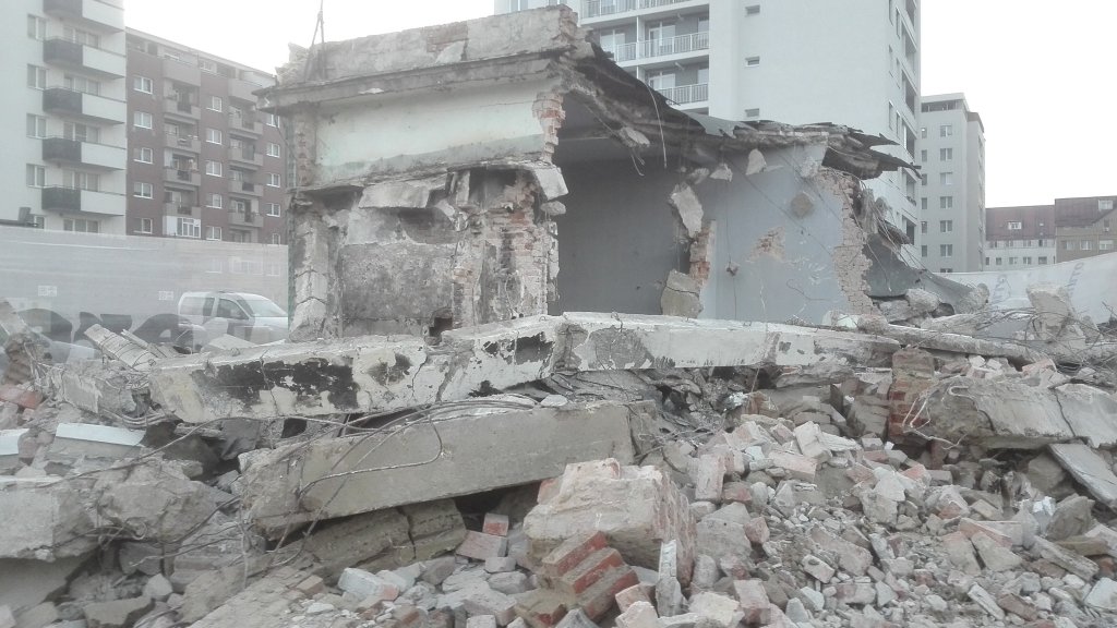 Ultima clădire aflată încă în picioare de pe fostul complex industrial Iris este demolată în aceste zile. Locuitorii din zonă sunt terorizați de veșnicul șantier care durează de peste 10 ani.
