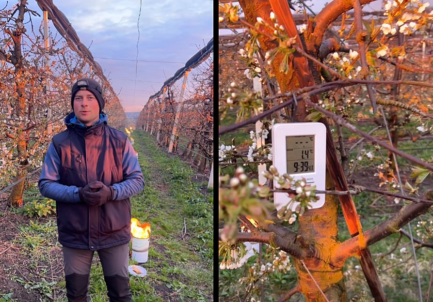O fermă din apropierea municipiului Cluj-Napoca luat măsuri extreme în urmă cu două nopți, după ce temperaturile au scăzut sub pragul de îngheț, punând în pericol livada de cireși aflată în plină perioadă de înflorire.