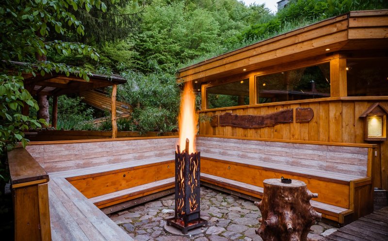 Apoi sunt separeurile de luat masa construite într-un butoi, sauna din butoi și jacuzzi în ciubărul care poate fi practic asimilat unei jumătăți de butoi - toate elemente care creionează o atmosferă de poveste potrivită atât pentru team buildings și nunți cât și pentru concedii în natură (cei mici au un minunat parc dar și loc de joacă în interior, pentru cei mari există airsoft, paintball, remi, table, șah, cărți de joc, acces wireless sau un bar bine garnisit și o terasă generoasă cu 80 de locuri în aer liber și 36 lucuri acoperite).