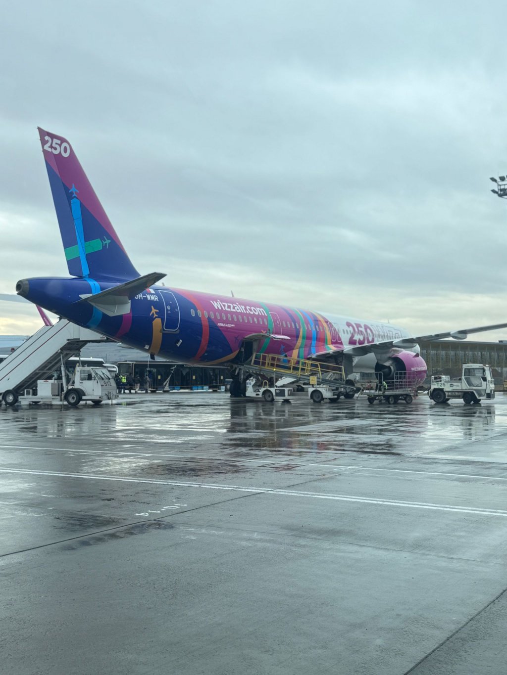 Aeronava cu numărul 250 din flota Wizz Air, vopsită într-un livery special aniversar, a aterizat la Cluj-Napoca, marcând un moment important pentru companie și pentru pasionații de aviație.
