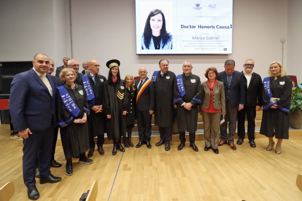 Universitatea Tehnică din Cluj-Napoca a conferit titlul de Doctor Honoris Causa doamnei Mariya Gabriel, Președinte al Institutului Robert Schuman și fost Comisar European pentru Inovare, Cercetare, Cultură, Educație și Tineret, în cadrul unei ceremonii festive, care a avut loc miercuri, 8 octombrie, în Aula HUB UTCN.