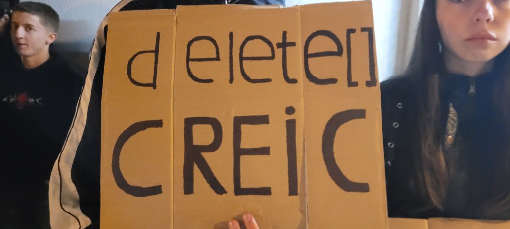 Foto Protest anti-CREIC încentrulClujului! Studenții de la Mate-Info îl așteaptă în stradă pe ministrul Daniel David: "Hai afară, fuga e ușoară "