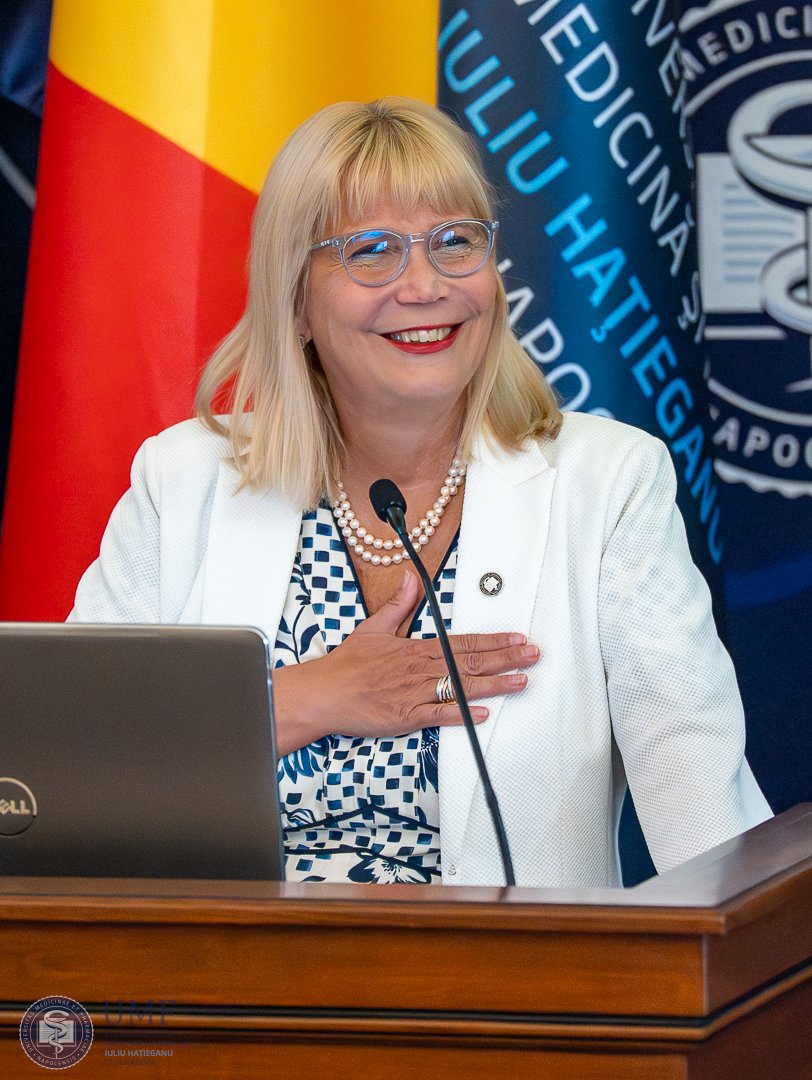Prof. dr. Anca Buzoianu, rectorul UMFIH Cluj-Napoca, le-a mulțumit tuturor celor care au participat la ceremonia de deschidere a seminarelor - invitaților speciali, studenților și părinților care i-au însoțit.
