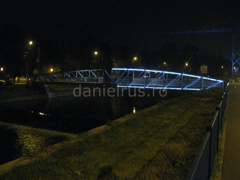 LED-urile de la Podul Elisabeta, modernizat recent şi singurul pod iluminat deocamdată din Cluj_Napoca, s-au ars pe jumătate. Fotografia a fost realizată de un blogger clujean, săptămâna trecută.