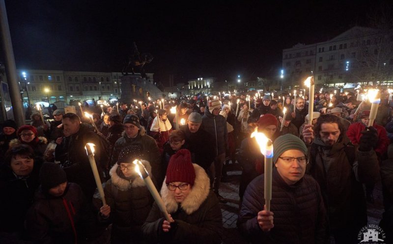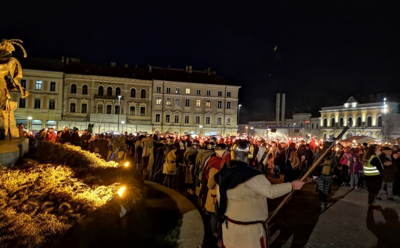 Sute de persoane cu torţe aprinse în mâini şi având în frunte bărbaţi îmbrăcaţi în ţinute medievale din secolul XV au participat, sâmbătă seara, la un marş solemn pentru aniversarea a 576 de ani de la naşterea regelui Ungariei, Matia Corvin, născut la Cluj-Napoca.