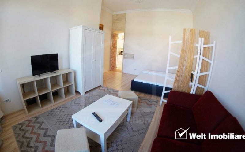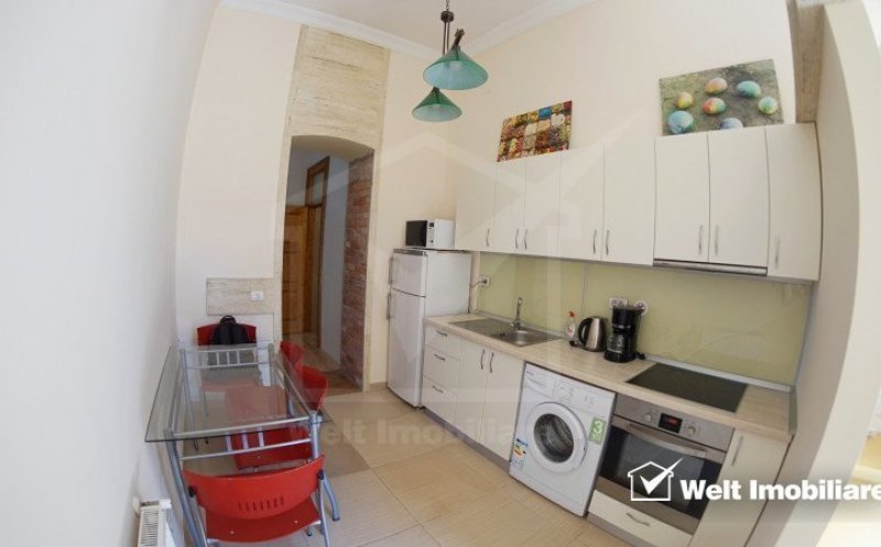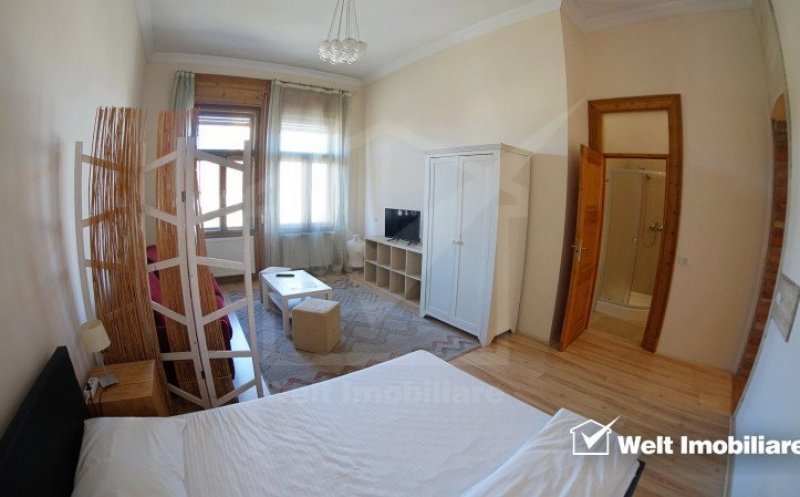 ''Inchiriez apartament 1 camera ultracentral cu priveliste geniala spre Piata Unirii. Apartamentul este amenajat modern cu finisaje de lux, pastrand inca aspecte din arhitectura initiala. Cladirea in care se afla apartamentul este un simbol istoric al Clujului, datand din secolul XIV. Inaltimea spatiului interior este de 3,8 m, tavan inalt, deci spatiu volumetric mare care confera un anume tip de confort", se arată în anunţul de vânzare.