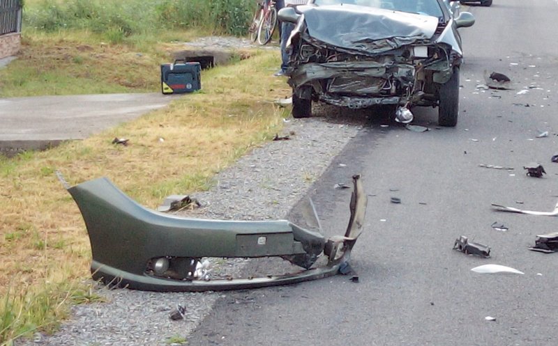 Foto Accident Cluj: Impact violent între două mașini. Una s-a dat peste cap