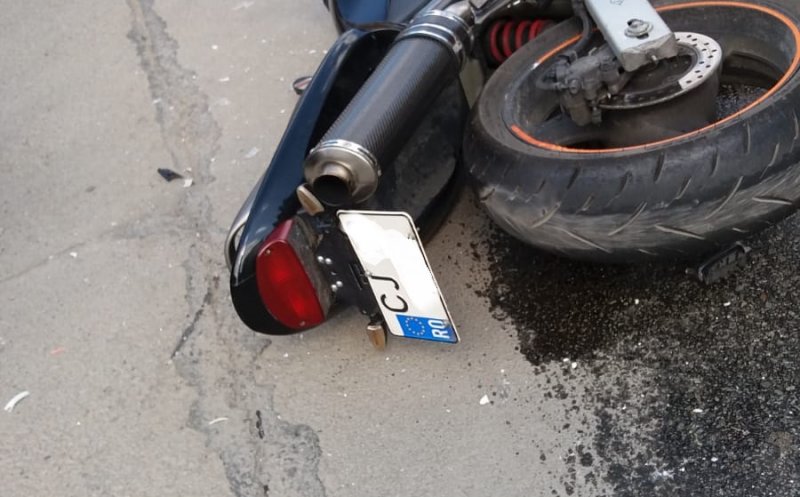 Accident Cluj: S-a răsturnat cu motocicleta într-un sens giratoriu