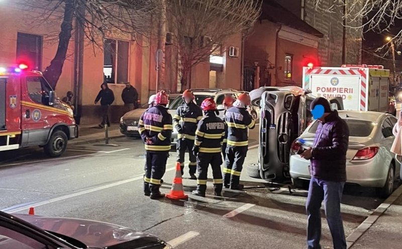 "Ajunse la fața locului, forțele noastre au găsit 5 autoturisme avariate, dintre care unul răsturnat. Celelalte 4 erau parcate. Nu au existat victime încarcerate, iar o femeie a fost preluată de echipajul SAJ, care i-a acordat îngrijiri medicale. La o primă evaluare, aceasta nu suferise leziuni grave. La misiune au luat parte două autospeciale cu modul de descarcerare și două ambulanțe SAJ", a transmis ISU Cluj.