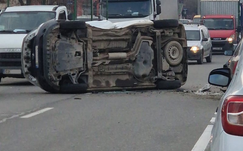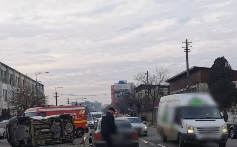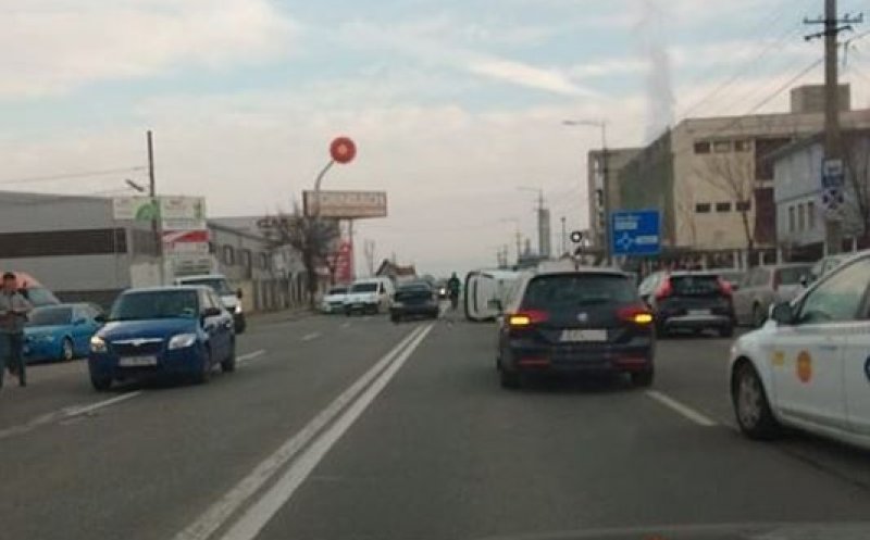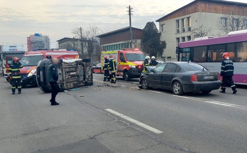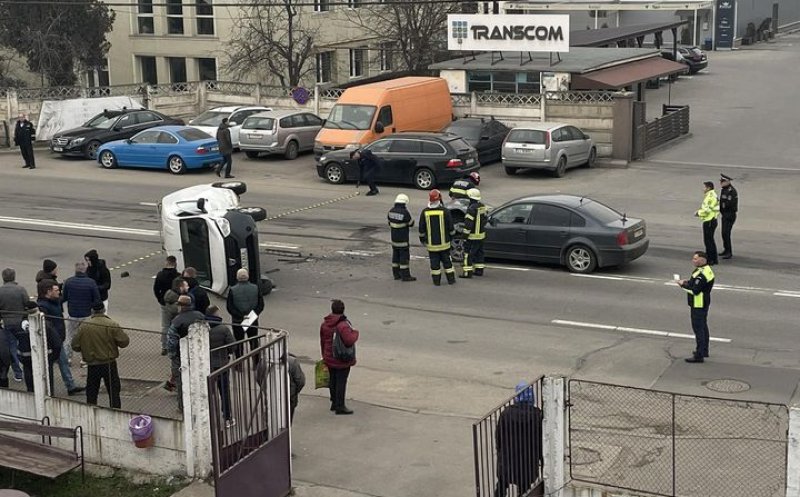 Două autoturisme au fost implicate într-un accident pe strada Câmpina, în zona magazinului Hornbach. Una dintre mașini s-a răsturnânat pe carosabil.