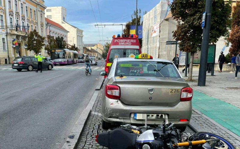 Foto Accident cu motociclist în centrul Clujului, lângă Primărie