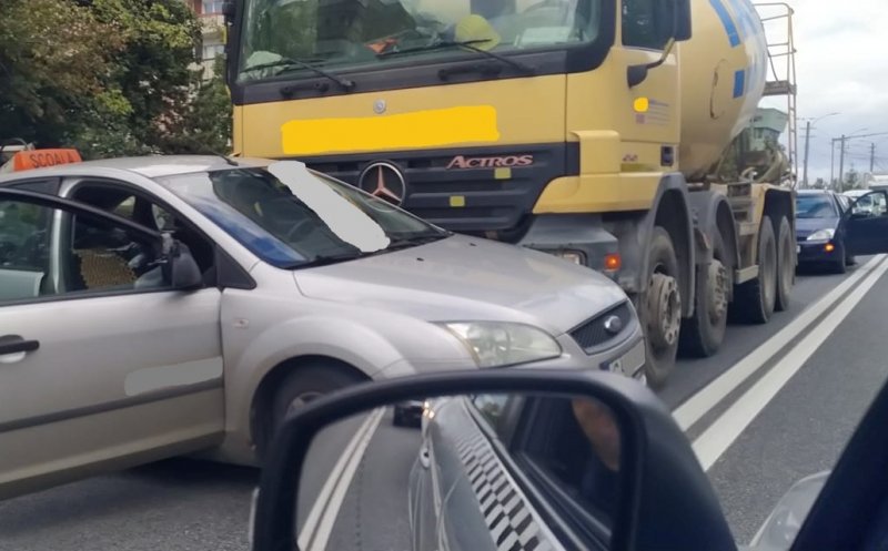 O mașină de școală de șoferi a fost izbită în plin de o betonieră pe strada Aurel Vlaicu din Cluj-Napoca.