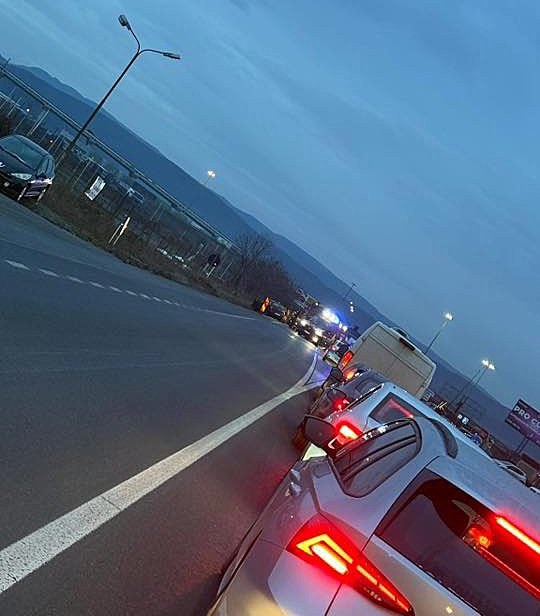 ”Un Volkswagen Polo negru și un BMW gri-verzui, din ce am apucat să văd în trecere, numerele de înmatriculare nu le-am văzut... erau destul de șifonate mașinile, cel puțin Polo era aruncat în șanțul dinspre târgul auto”, a transmis un participant la trafic.