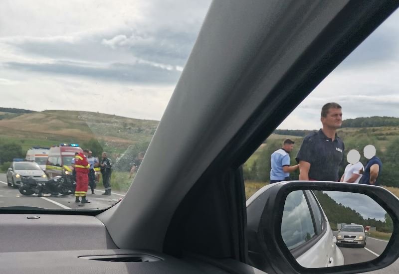 Un accident de circulație, în care au fost implicate o mașină și o motocicletă a avut loc, joi, la Cluj, între localitățile Nădășelu și Sânpaul.