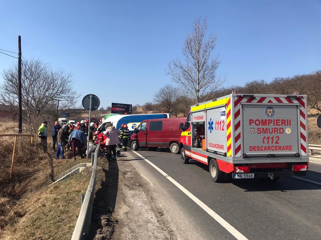 Foto Accident GRAV la ieșirea din Baciu. Impact între o dubă și un microbuz