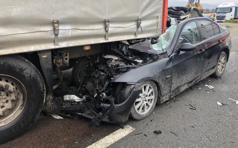 Un șofer de 22 de ani a rămas încarcerat după ce a ajuns cu mașina sub un TIR.