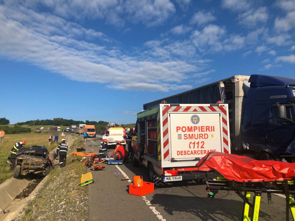 Accidentul a avut loc în jurul orei 7,30. La fața locului intervin 2 autospeciale, un echipaj SMURD și unul SAJ. Trei persoane ar fi încarcerate. Traficul este blocat pe ambele sensuri.